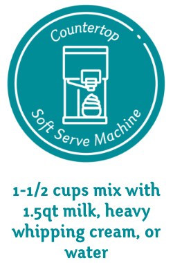 No matter which equipment you use, Frostline® makes it easy and tasty. Follow these general guidelines to get started but always remember to look at your instruction manual for equipment capacity. Mix with water, whole milk, or heavy whipping cream for an indulgent texture. Remember, this is soft serve! Have fun!